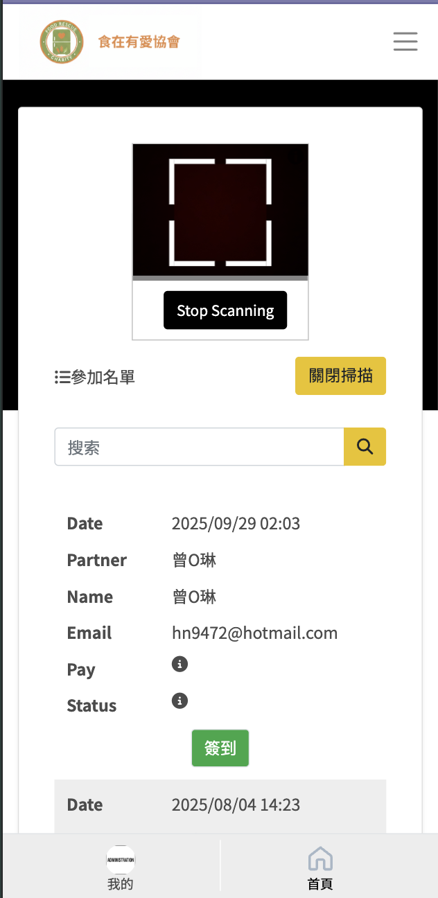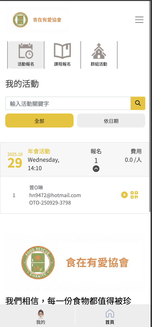 會員登入後可以查詢報名記錄以及簽到QRCode,可以幫年長者預先列印降低應用障礙