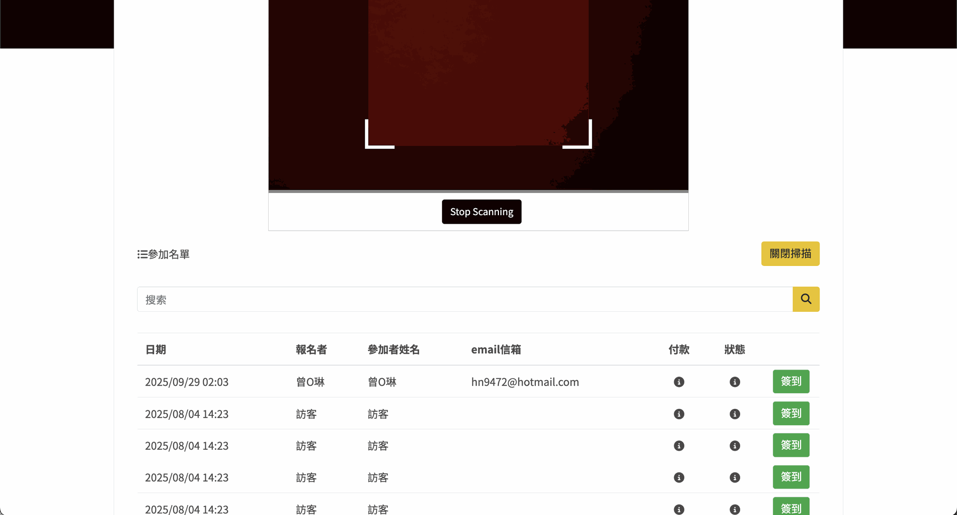 不需要額外設備,手機或電腦登入帳號,開啟鏡頭權限即可作為簽到工具掃描會員QRCode簽到