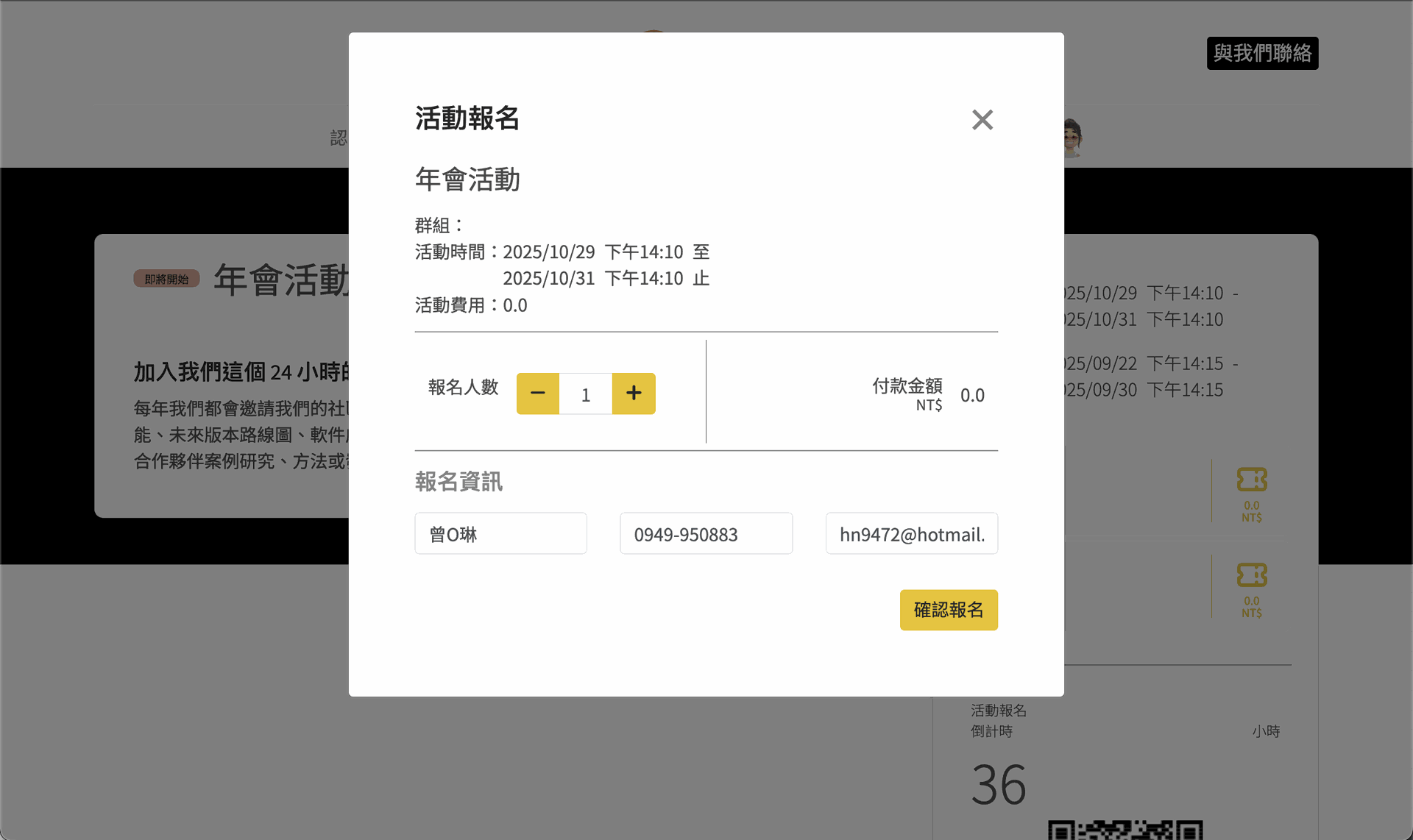 活動發佈提供了彈性的報名條件設定選項,可以管理限本人、可代報名、免報名活動